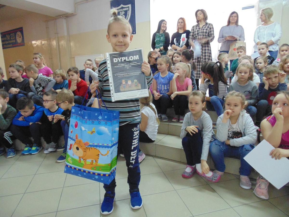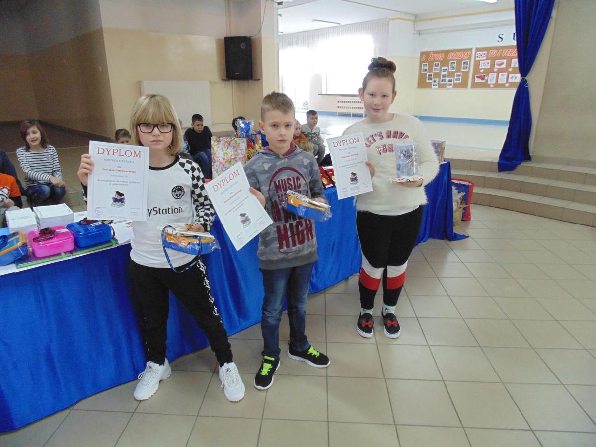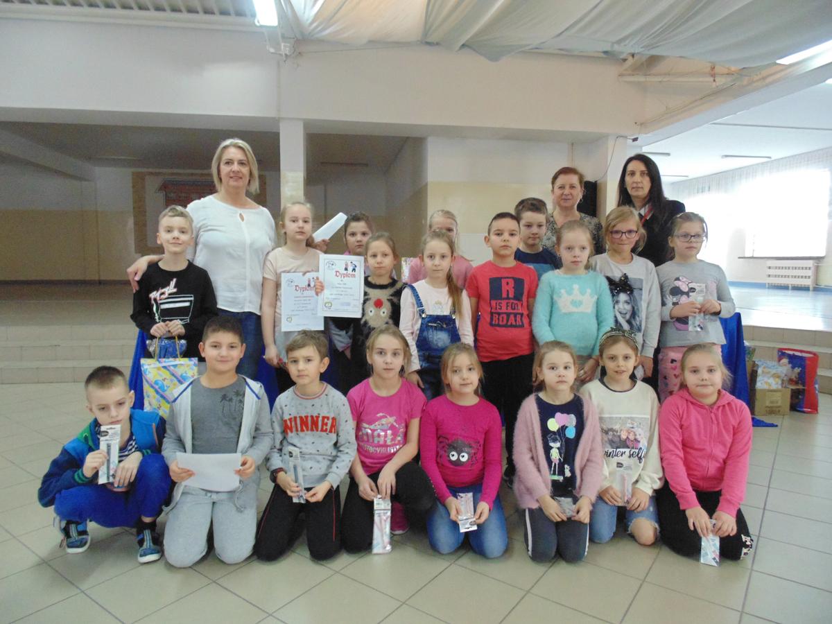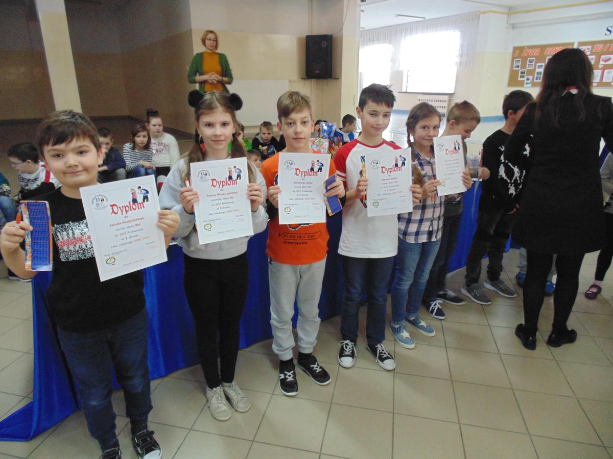 Podsumowanie I okresu roku szkolnego 2019/2020 Dnia 19 lutego 2020r. odbył się apel podsumowujący I okres roku szkolnego 2019/2020. Wzięli w nich udział uczniowie kl.0-III. Podczas uroczystości uhonorowano nagrodami i dyplomami poszczególne klasy oraz osoby, które mogły się poszczycić rozmaitymi osiągnięciami np. stuprocentową frekwencją czy największa ilością przeczytanych książek. Oprócz tego nagrodzono uczniów za udział w rozmaitych konkursach przedmiotowych min. zbiórkę plastikowych butelek i makulatury. Wszystkim wyróżnionym serdecznie gratulujemy i życzymy dalszych sukcesów w nauce, konkursach i pracy na rzecz szkoły.